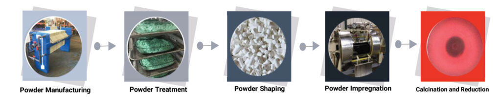 Beyond shaping – Toll manufacturing of full catalyst recipes: Exacer can do more than just shape a powder. Together with selected partners Exacer is capable of producing a full catalyst recipe including powder precipitation, powder impregnation, milling steps, impregnation of carrier bodies or even reduction steps for a final activation. All our partners are quality companies from Europe or the US, which are typically specialized on their particular unit operations and not competing with our customers. The advantage for our customers is that Exacer, due to its deep understanding of catalyst manufacturing and applications, can drive such a complex production chain as a main contact in a successful and efficient way and the customer does not have the pain of managing several partners for one project in parallel. As Exacer, also many of our partners have developed highly skilled solutions for particular steps – we may also be able to convey new solutions to our customers, that you did not consider before.